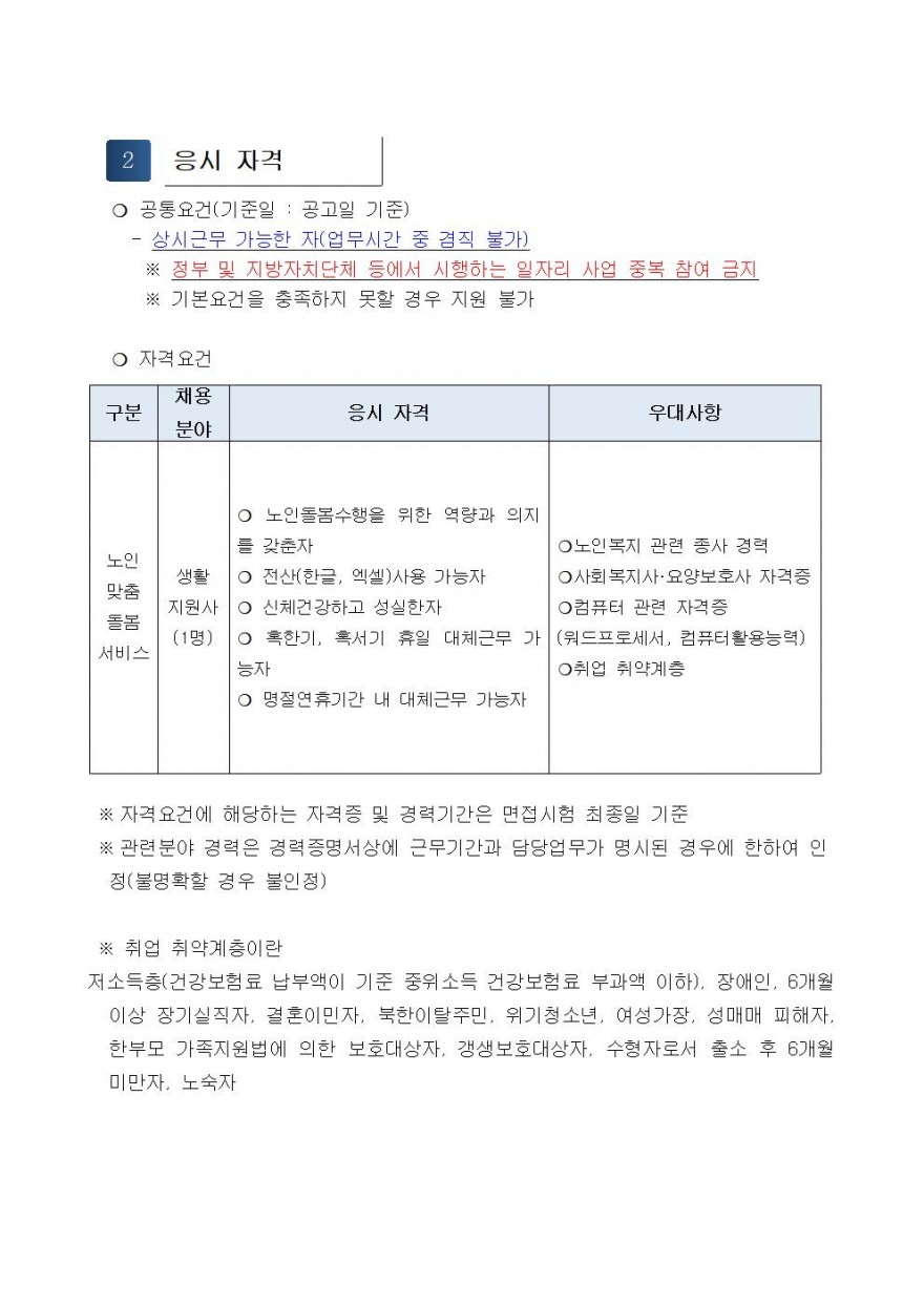 용인시기흥노인복지관 기간제 근로자(생활지원사)채용공고(긴급)
