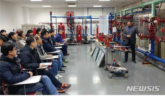 [서울=뉴시스]11일 화재보험협회는 방재시험연구원에서 화재안전우수건물 관계자 30명을 초청해 방재기술교육을 했다고 밝혔다.2019.12.11.(사진=화재보험협회 제공)photo@newsis.com