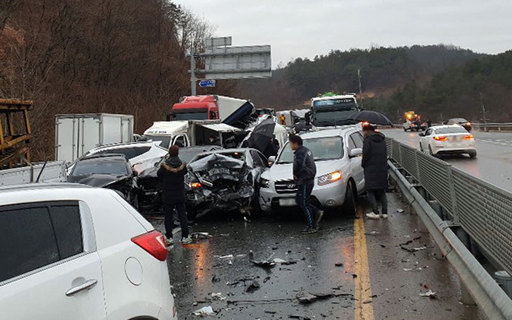 | 경남 합천군 대양면 한 도로에서 블랙아이스가 원인으로 추정되는 사고가 발생해 차량 40여 대가 추돌했다. 합천소방서 제공 |