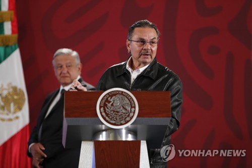 CEO of the state-owned Petroleos Mexicanos (Pemex), Octavio Romero (C), speaks along with President of Mexico Andres Manuel Lopez Obrador (R) during his morning press conference in the National Palace of Mexico City, Mexico, 07 January 2020. After one year of the implementation of the strategy to combat fuel theft, a 91% reduction in this crime has been achieved, the Government of Mexico reported Tuesday. This reduction has represented a saving of 56,000 million pesos (2,964 million dollars). EPA/José Méndez