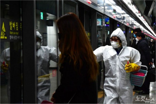 코로나19 확진자가 2천명을 넘어선 지난달 28일 오후 서울교통공사 관계자들이 광화문역에서 방역작업을 하고 있다. (사진=황진환 기자/자료사진)"대구·경산 외 코로나19 집중 발생 지역 아직 없어. 추가 감염병 특별관리지역 추가 고려 없어"(끝)▶ 코로나19 확산 관련기사 모음